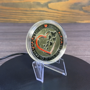 On the reverse side, every coin includes a pre-designed memorial theme with comforting words, icons or phrase, carefully detailed to honor and remember loved ones.
